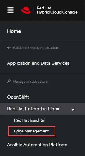 When you first log into your Hybrid Cloud Console, navigate to the “Edge Management” menu.