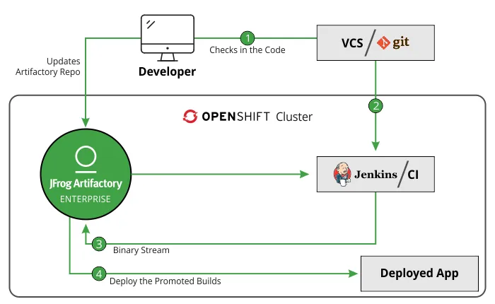 Back in January of this year, we announced the integration of JFrog Artifactory with OpenShift, the repository manager, with the Red Hat OpenShift Container platform for Kubernetes. Together they provide developers a way to help streamline and optimize their CI/CD workflow from source to Kubernetes cluster.