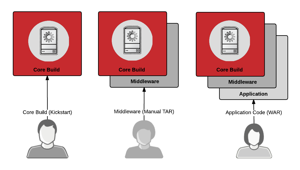 - Middleware: tar files (Java), RPMs (MySQL, PostgreSQL), Ruby Gems, or PHP PEAR objects