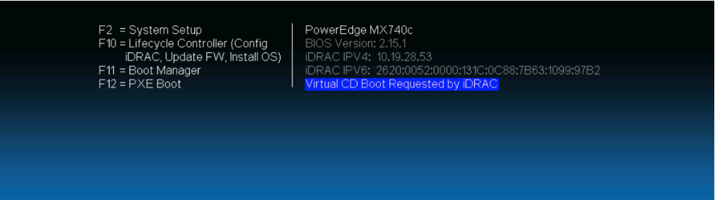 Monitoring the provisioning means examining the ZTP workflow with some additional verifications. First, a few minutes after syncing the configuration, notice that the server is rebooted. It boots from the virtual CD.