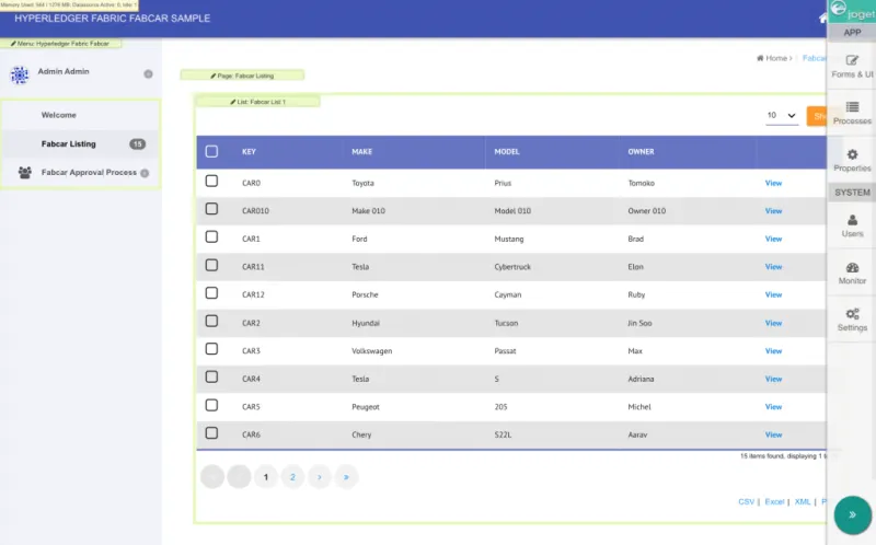 Joget is an open source low-code/no-code application platform for faster, simpler digital transformation. To demonstrate the incorporation of blockchain technology in an app, let’s design a Joget app running on OpenShift that makes use of the Fabcar blockchain sample provided by IBM.