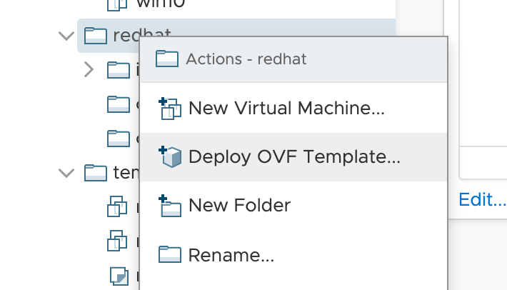 govc is a vSphere CLI tool. Here's how to use to import OVAs directly from Red Hat to your VMware environment as a one-liner, make sure to adjust the version number, folder, datastore, name and url as required.