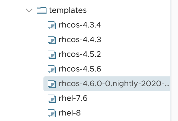 Take note of the name of the template and configure ocp4/clusters/4.6-coredns-and-staticIP/terraform.tfvars appropriately.