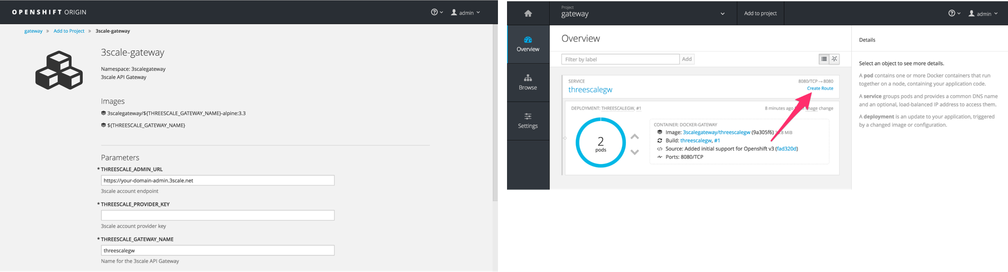 The template for the 3scale API gateway can be obtained from Github and can be deployed on any existing OpenShift v3 infrastructure with just a few clicks (see screenshots at bottom of this post). Please refer to this tutorial for a more comprehensive, step-by-step description of setting up an OpenShift environment, creating a 3scale account and deploying the API gateway.