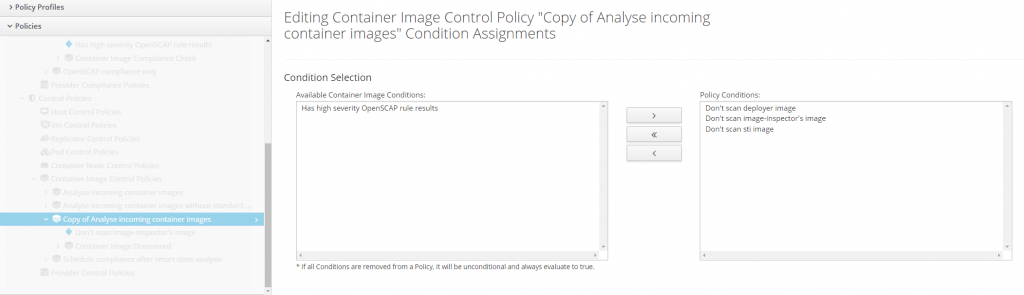 Copy control policy Analyse incoming container images and edit condition assignments.