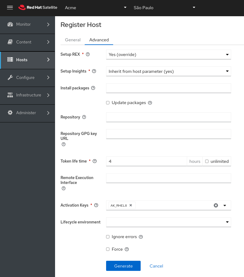 After filling, click on the “Generate” button where the command to register the host appears as follows: