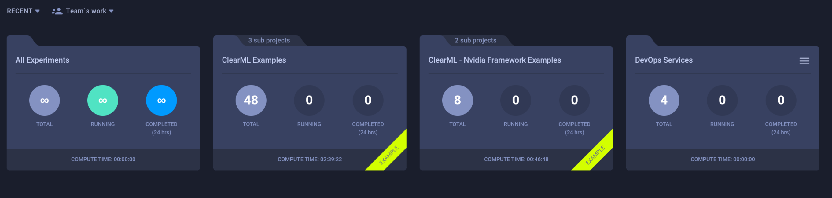 Eventually, ClearML will sync in all of the example content and workspaces: