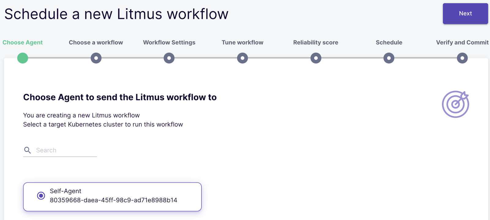 The cluster where LitmusChaos is deployed should be already configured as an agent. Wait until the status becomes Active.
