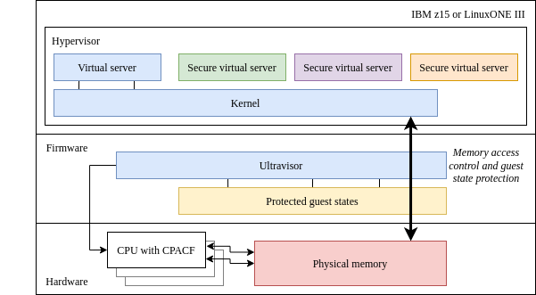 The IBM Secure Execution capabilities is available for the IBM z15 and z16 mainframes. It is a somewhat different design compared to what exists on x86, introducing a new level of system management in the firmware called the ultravisor that sits below the hypervisor.