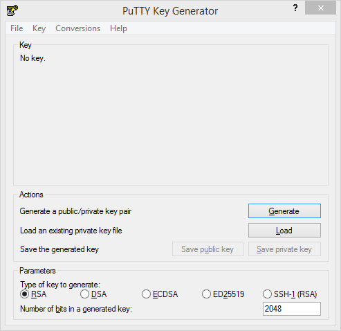 After installing PuTTY, open up PuTTYgen.