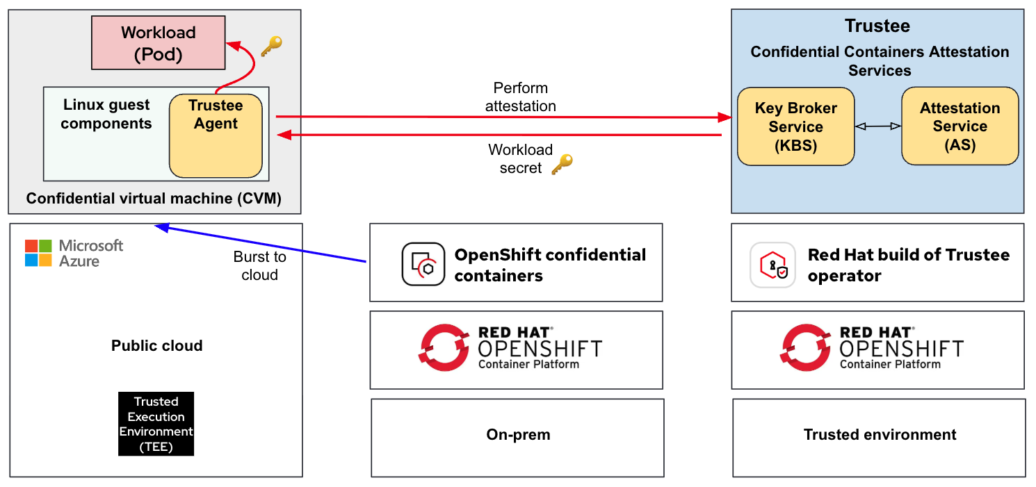 Confidential containers secure cloud bursting from an on-prem OpenShift cluster to CoCo workloads running on Microsoft Azure is now supported.