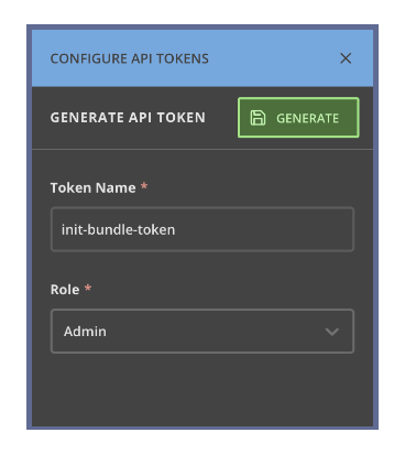 Configure a new API Token by giving it a name and the Admin role, and then select Generate.