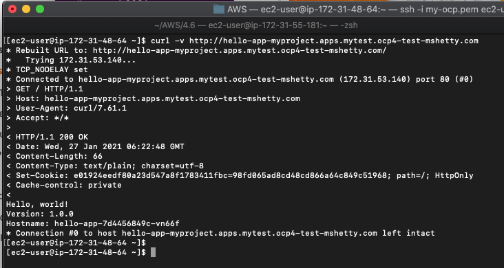 The screenshot below shows that the curl from the EC2 is accessing our service using the IP address of the ENI ie. 172.31.53.140