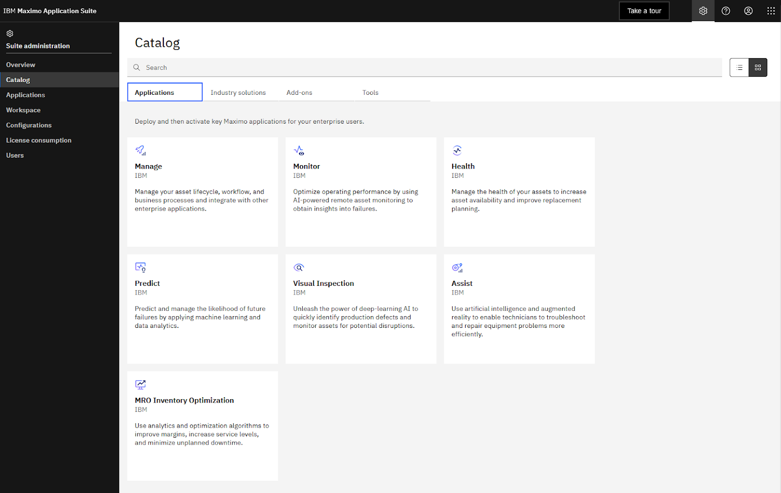 Applications available in this integrated Maximo Application Suite (MAS) include Maximo Manage (CMMS/EAM), Maximo Monitor, Maximo Visual Inspection, Maximo Health, Maximo Predict, and Maximo Mobile. By maintaining assets using Maximo EAM, customers will be able to Manage assets using Maximo Application Suite.