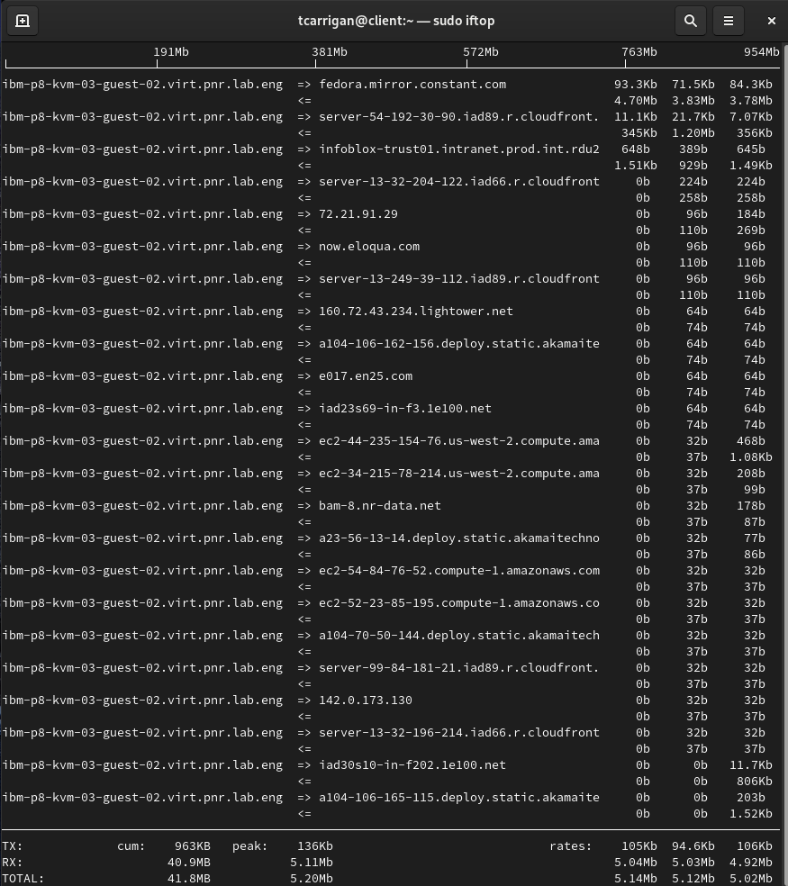 [tcarrigan@client ~] $ sudo iftop -n
