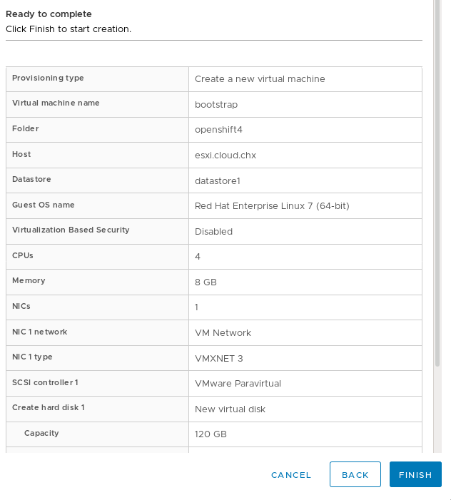 NOTE, if you're cloning from the bootstrap, make sure you adjust the parameters accordingly and that you're selecting "thin provision" for the disk clone.