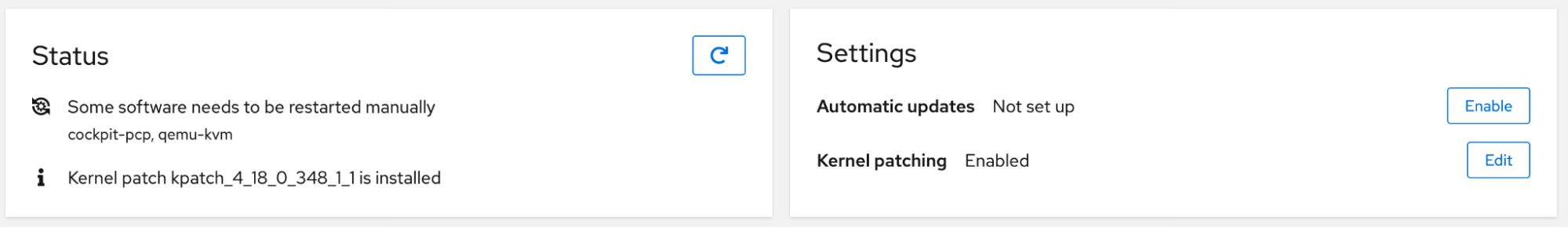 From there, configure Kernel patch settings in the right-hand box. That's it. Your system is ready to run with live kernel patches! You can either enable automatic updates or install the live kernel patches independently.