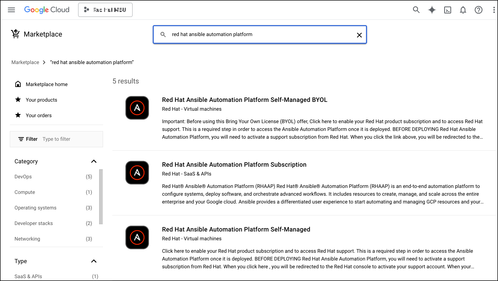 How do you get started with Ansible Automation Platform on Google Cloud? Simply visit Google Cloud Marketplace and search for Red Hat Ansible Automation Platform.