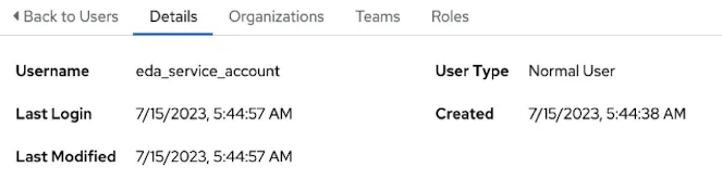 2. Create a Normal User in automation controller to represent the eda_service_account user from Event-Driven Ansible controller