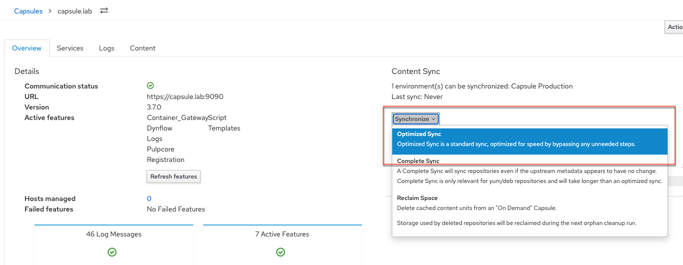- Content begins synchronizing to the capsule server from Satellite