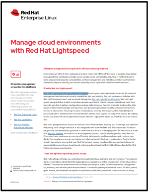 Download the overview to learn how Red Hat Lightspeed can help efficiently manage cloud performance, cost, and security across hybrid and multicloud environments.