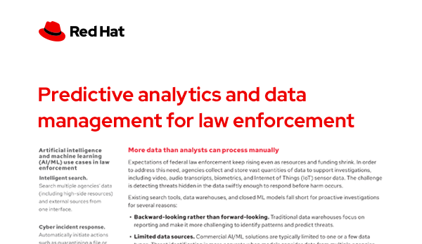 Red Hat’s open source technologies can help the intelligence community modernize effectively and remain competitive by adopting, developing, and scaling tools for optimized data collection and analysis, including artificial intelligence/machine learning (AI/ML).
