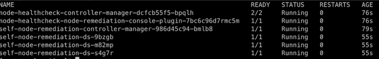 We can see that there is currently no managed ‘Self Node Remediation’ in the operator