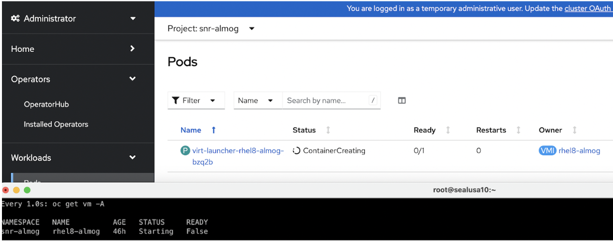 When the virt launcher pod status will be ‘ContainerCreating’, the VM status will be ‘Starting’