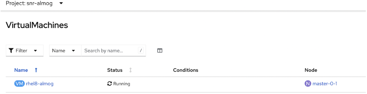 NOTE: We can see the node master0-0 hosts the VM