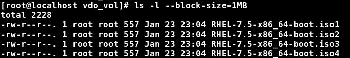 - For this purpose, I add a RHEL-7.5-x86_64-boot.iso file to the vdo_vol device on the /vdo_vol mountpoint.
