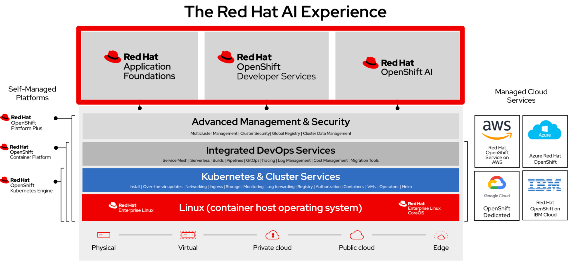 Red Hat OpenShift AI helps to bridge that divide, allowing organizations to build and deploy protected AI where the data lives, across datacenters, public clouds, and edge environments.