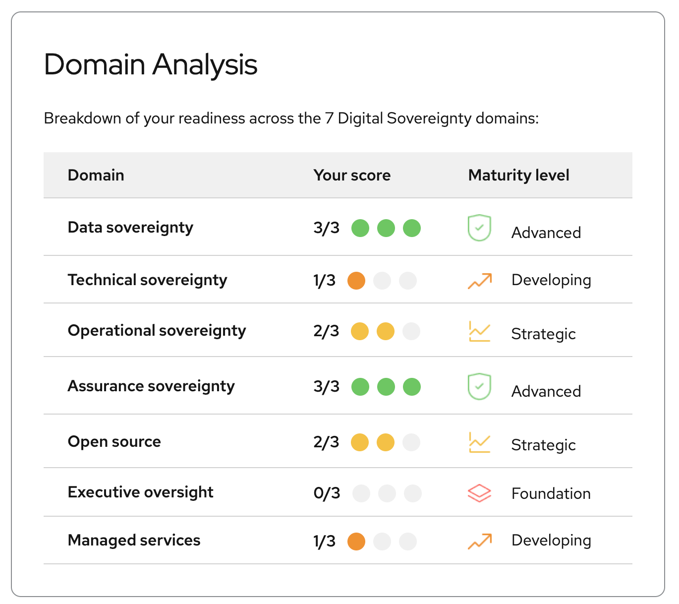 Entender los resultados: Escala de madurez de la soberanía de Red Hat