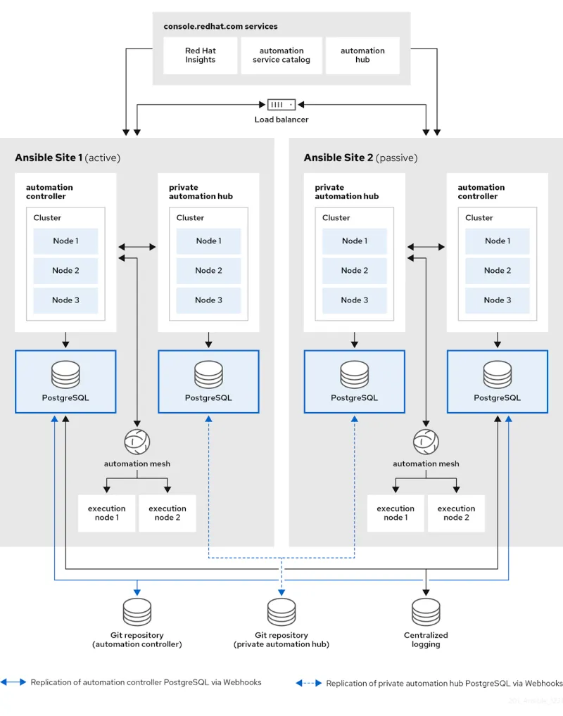 - Using a combination of GitOps practices (configuration as code capabilities) and Git webhooks to streamline the automation and delivery of configurations to multiple Ansible Automation Platform sites automatically, immediately and consistently.