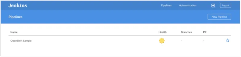 Click on Jenkins route URL and open it in a new tab. The Jenkin docker image in OpenShift is integrated into OpenShift OAuth authentication and therefore you can simply use your OpenShift credential to login to Jenkins. Clicking on the Open Blue Ocean button on the top, takes you the new Jenkins user experience, Blue Ocean.