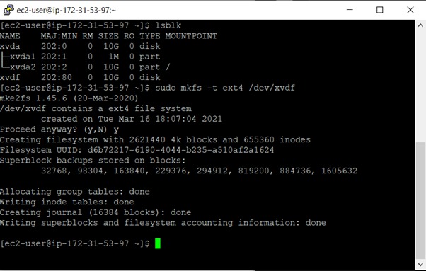 $ sudo mount /dev/xvdf /mnt/mydisk