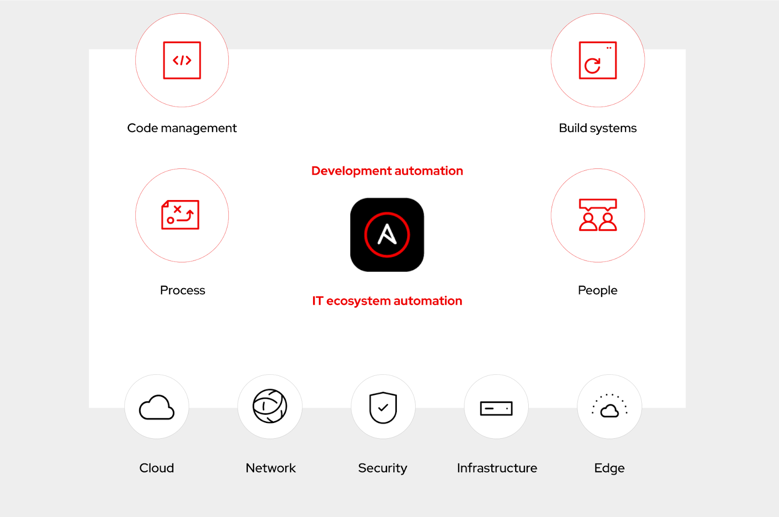 Ansible Automation Platform enables teams to define and standardise configurations across the IT ecosystem using an easy-to-understand, pervasive language. This capability reduces the operational overhead associated with managing multiple tools, commonly experienced when implementing a DevOps strategy.