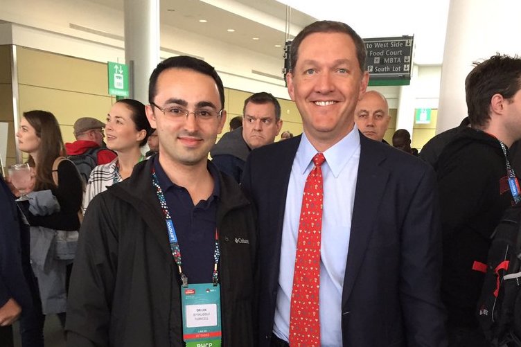 Orhan Bıyıklıoğlu, 2017 Red Hat Certified Professional of the Year accepting his award on stage at Red Hat Summit from Jim Whitehurst, Red Hat CEO