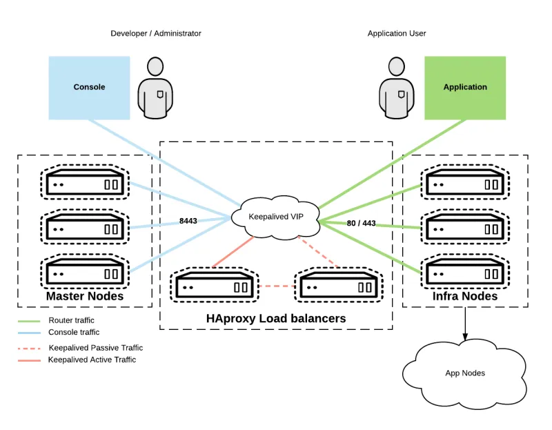 A typical deployment of OpenShift Container Platform has multiple master, application, and infrastructure nodes for highly available configuration. In this configuration, there is no single point of failure for the cluster, unless there is only a single HAproxy server configured to load balance cluster data.The following article discusses how to configure Keepalived for maximum uptime of HAproxy. This process is mostly automated with Ansible in the "vsphere on OCP" reference architecture. This article breaks down that automated process in a step-by-step how-to.