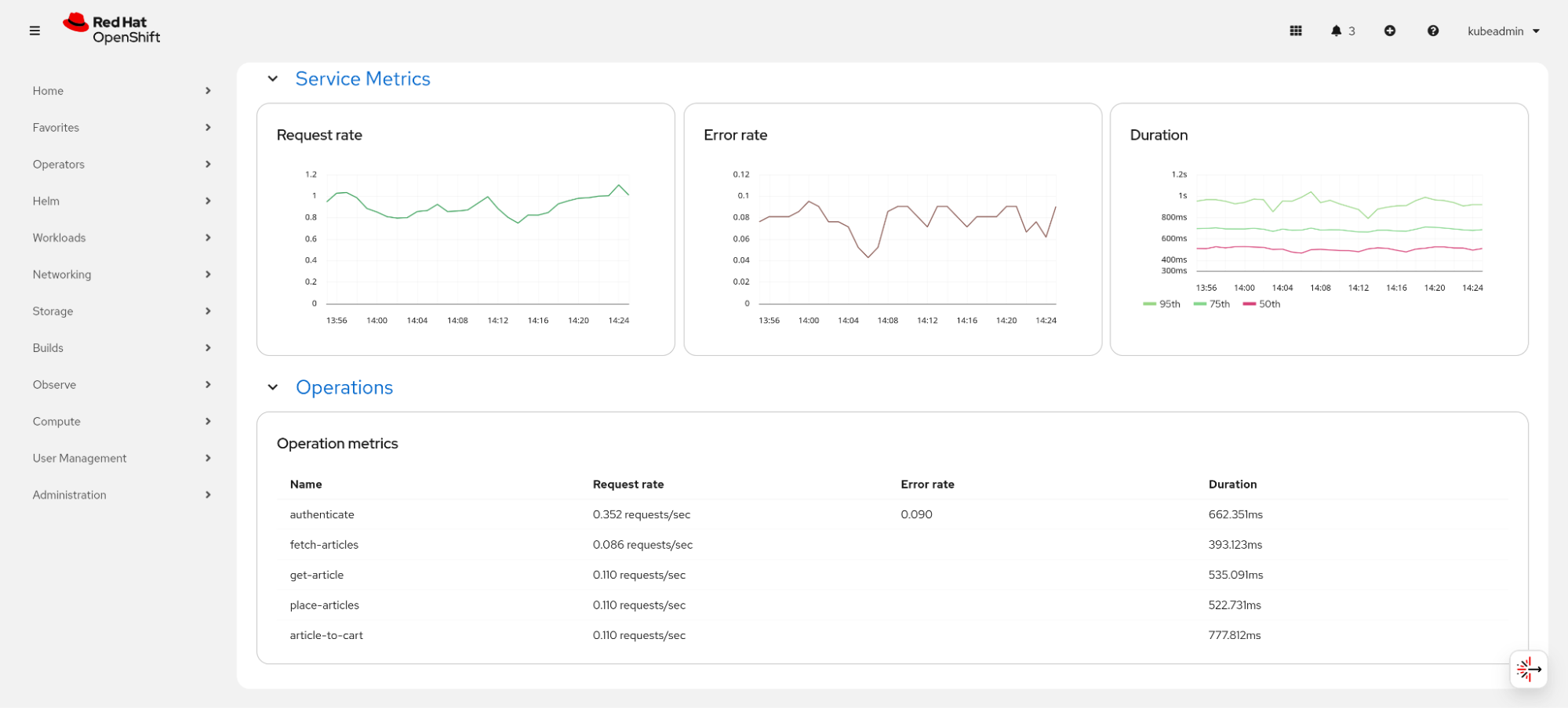 A new application performance monitoring (APM) dashboard is available as a developer preview with the cluster observability operator 1.3 release. The APM dashboard, populated by Red Hat distributed tracing platform, is a critical tool for site reliability engineers (SRE), DevOps teams, and developers. It allows users to: