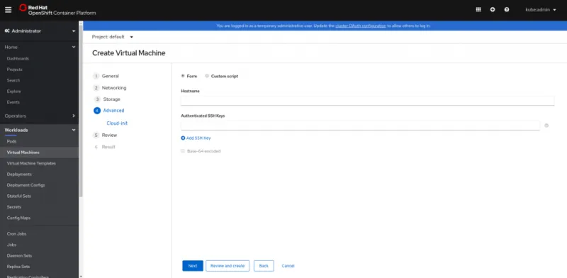 - By filling a form (default) to define a set of common parameters like hostname and authorized SSH keys.