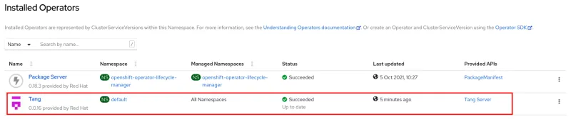 INFO[0031] Found ClusterServiceVersion "default/tang-operator.v0.0.16" phase: Succeeded