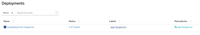 1 - Launch of a Kubernetes deployment, with the number of Pods of the Tang server container equal to the number of replicas specified in the creation form. If, for example, a TangServer named “tangserver-multi-replica” with three replicas is created, the deployment created will be as follows: