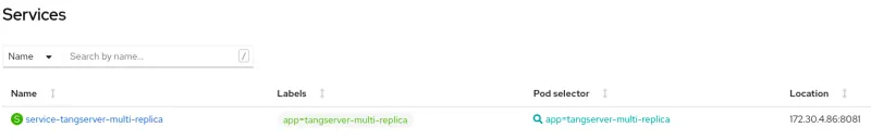 To get the details of the Service, you can click the “service-tangserver-multi-replica” service. Details of the service, such as Public IP (External Load Balancer IP) and port will be shown: