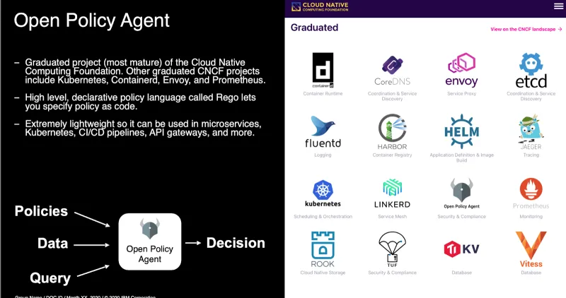 The next illustration provides a little more detail on OPA. Ansible Automation Platform is currently being used in the environment and the capabilities are well understood. OPA is also a mature and graduated open source project, like Ansible Automation Platform, and provides the Policy as Code specific functionality. You can learn more information on OPA here.