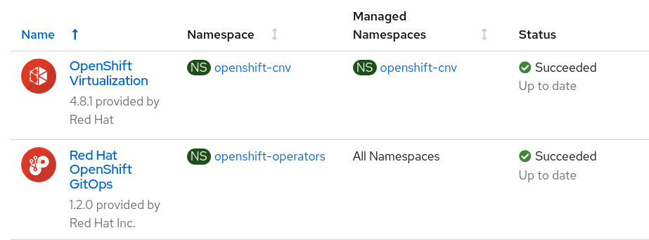 This blog is written for OpenShift Virtualization 4.8.0 and OpenShift GitOps 1.2.0. The example cluster used is OpenShift 4.8.0 on bare metal, and the only prerequisites are to install OpenShift GitOps from the Operator Catalog and ensure a supported storage class is available for automated PVC provisioning.