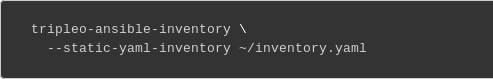 After running with --stack-only, the first thing to do is to generate the Ansible inventory file with the tripleo-ansible-inventory command (use --help to see a full list of options):