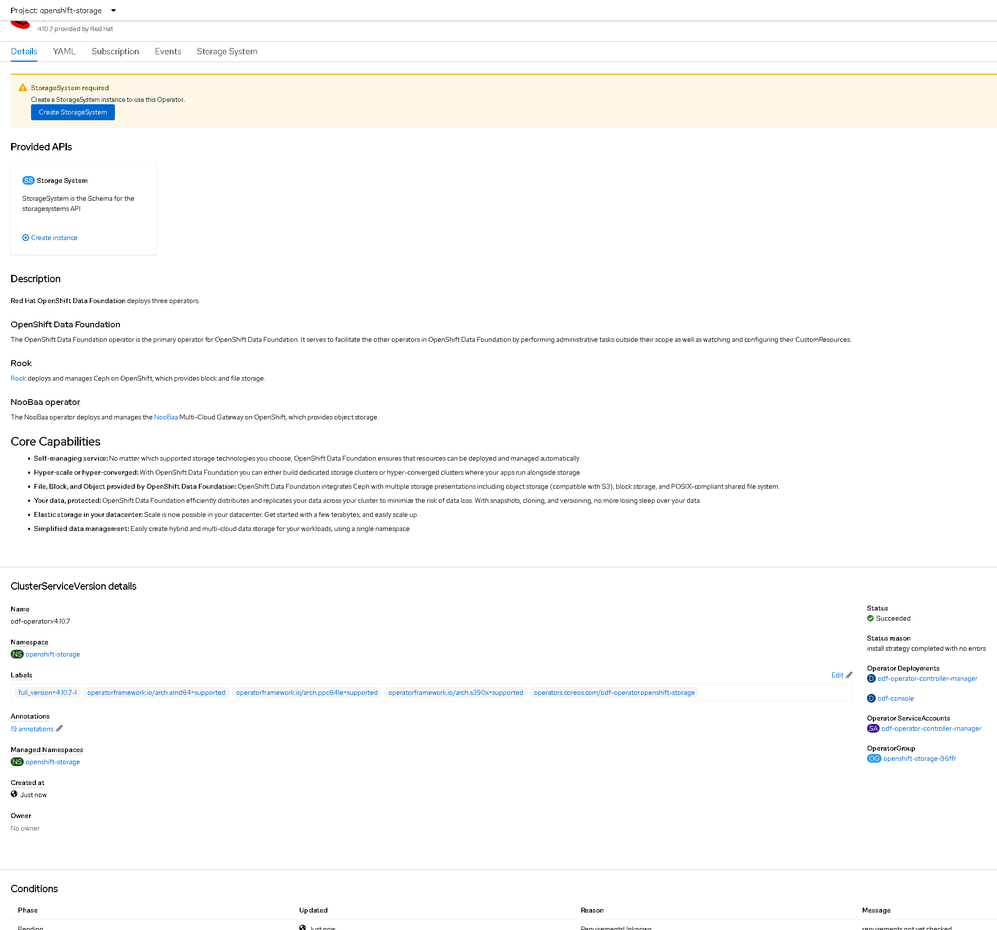 - odf-operator is installed: