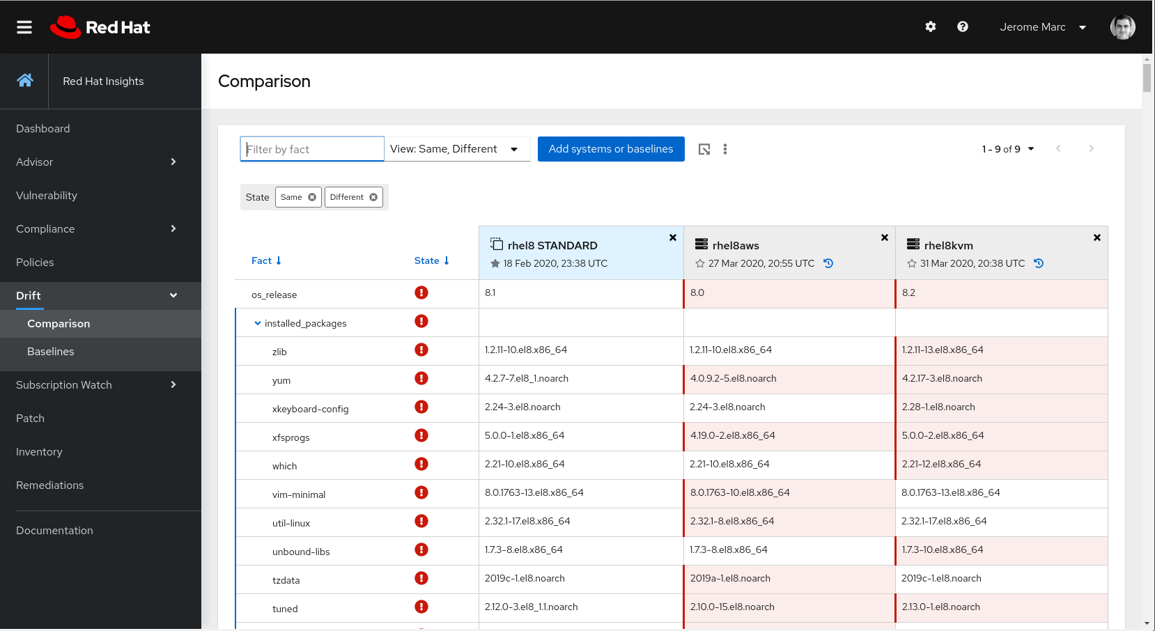 We recently held a Red Hat Insights Ask Me Anything webinar about the Drift service. It included a short demonstration of the Drift capabilities as part of Red Hat Insights. You can watch its recording on-demand from the Red Hat Insights Ask Me Anything Webinars library.