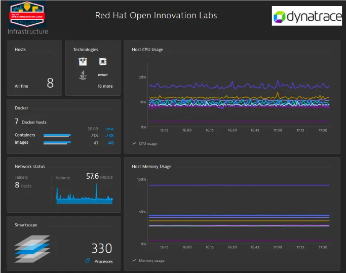The Red Hat Open Innovation Labs team has done work with Dynatrace to integrate their monitoring solution with Red Hat OpenShift Container Platform for use as part of Open Innovation Labs residencies. [Please see this blog posting for more information about the work done]. Based on this work, I have found that deploying the Dynatrace solution is fairly straightforward and it provides a comprehensive monitoring solution for both the IaaS (Infrastructure-as-a-Service) and PaaS, as well as the applications running in the environment. Even though we have done work around monitoring of the IaaS, such as the Red Hat OpenStack Platform, with Dynatrace (and it did quickly find some bottlenecks in our hosting environment), the IaaS story is outside of the scope of this blog posting and something we may cover another time.