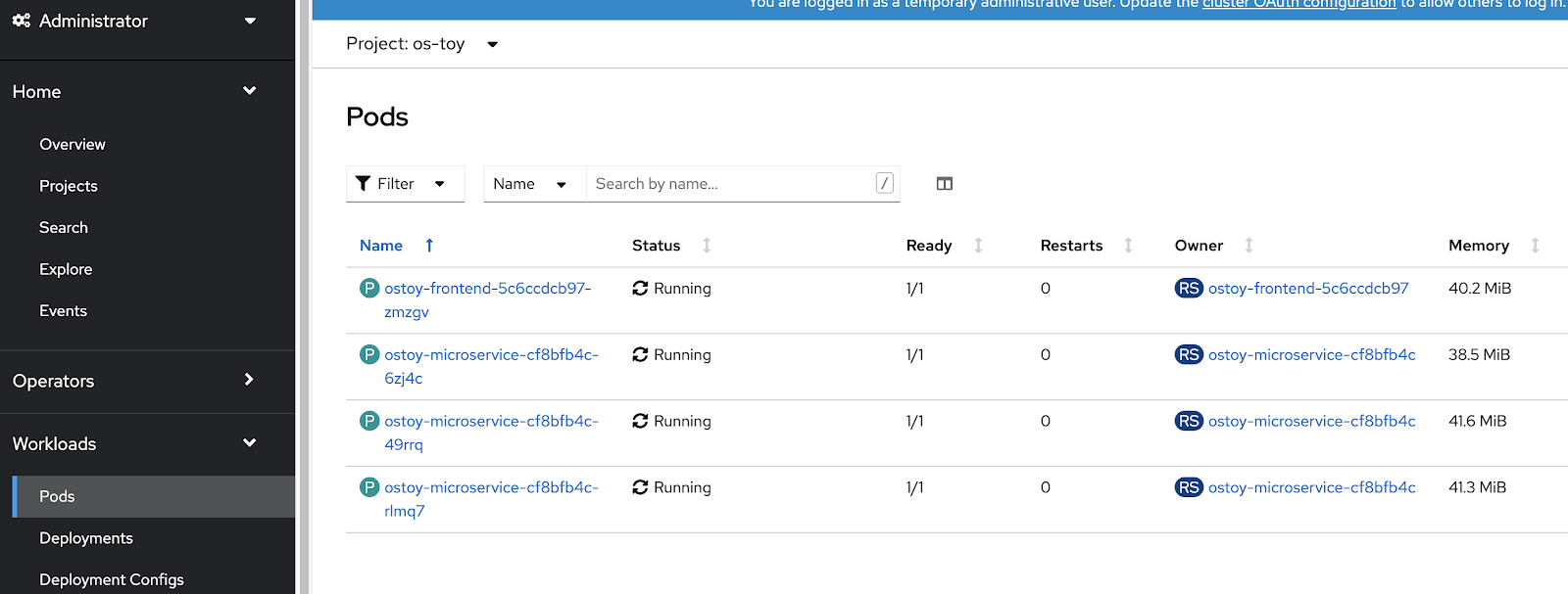 To make it more practical, I’ll use an example taken from one of the workshops I run. One of the applications in this workshop, os-toy, allows the user to play with Kubernetes and discover various aspects of the technology.